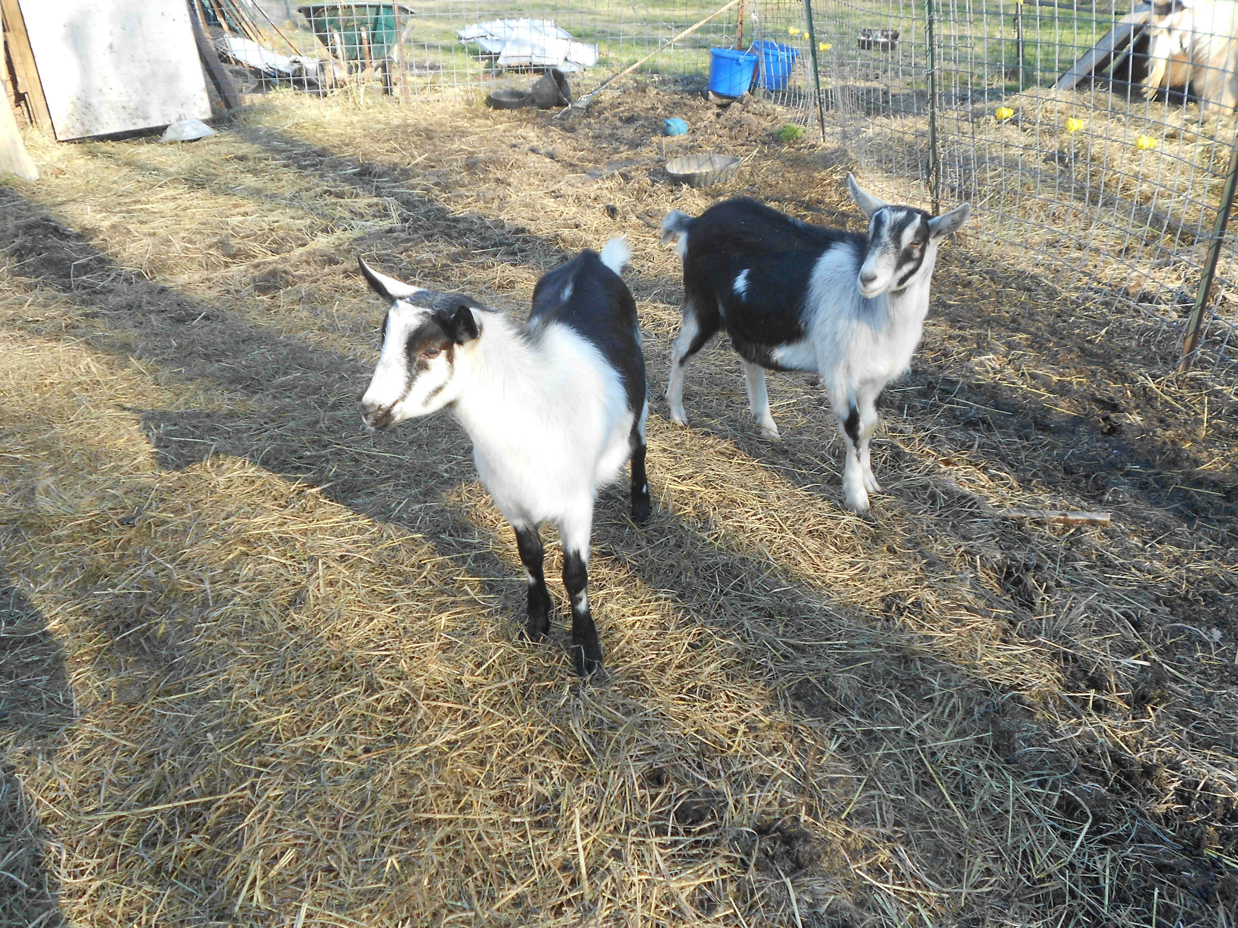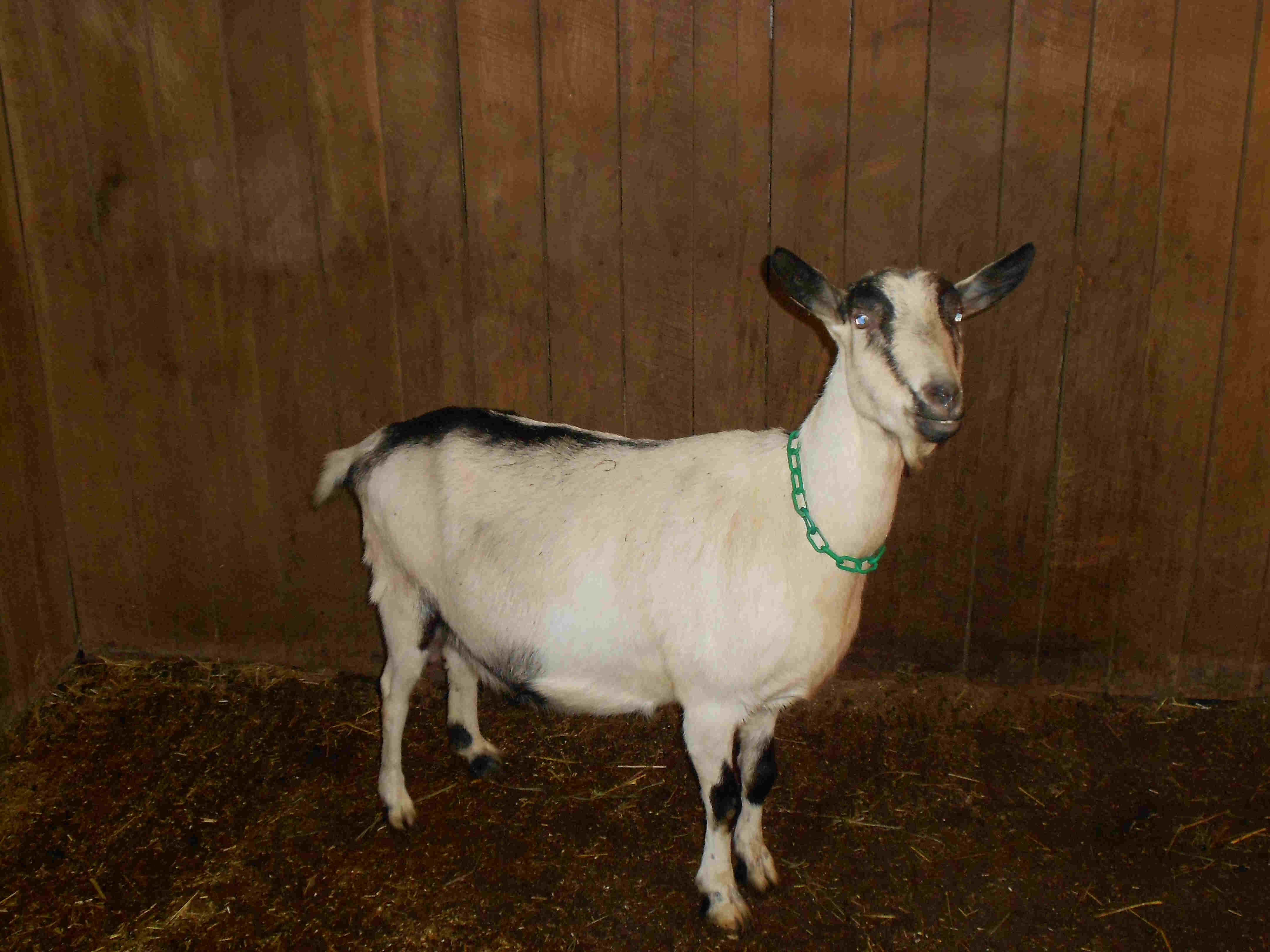 This is our three year old Alpine doe, Dainty Doe. This year we our bred our Alpine to our Kiko herd sire we are excited to see the kids. Last year she was bred to a 100% Alpine buck her kids are show below. She is our first dairy goat. So this year we will be looking at all the things we can do with her milk. Last year she was producing 1/2 gallon of milk a day.